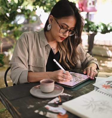 Meu processo é autoral e personalizado buscando representar com autenticidade aquilo que é importante para você ou sua marca, fortalecendo a sua identidade.